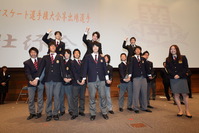 フィギュア世界選手権(3月・東京)に出場する高橋大輔さん(24=文院2)、織田信成さん(23=文4)が12日、関西大学千里山キャンパスで行われた関大主催の壮行会に出席。アジア冬季競技大会(30日開幕・カザフスタン)に出場する町田樹さん(20=文3)、ユニバーシアード冬季競技大会(27日開幕・トルコ)に出場する國分紫苑さん(19=社1)らの壮行会も兼ねて行われ、会場は700人の観客で埋まった。【写真・関大サッカー部の選手たちに担がれる(写真左から)町田樹さん、高橋大輔さん、織田の信成さんと、笑顔を見せる國分紫苑さん=千里山キャンパス】高橋さんは「世界選手権では2連覇を目指し、がむしゃらに練習していきます」と連覇を宣言。織田さんも「2位が多いので、金を関大に持って帰れるように頑張りたい」と話すと、会場から声援が飛んだ。