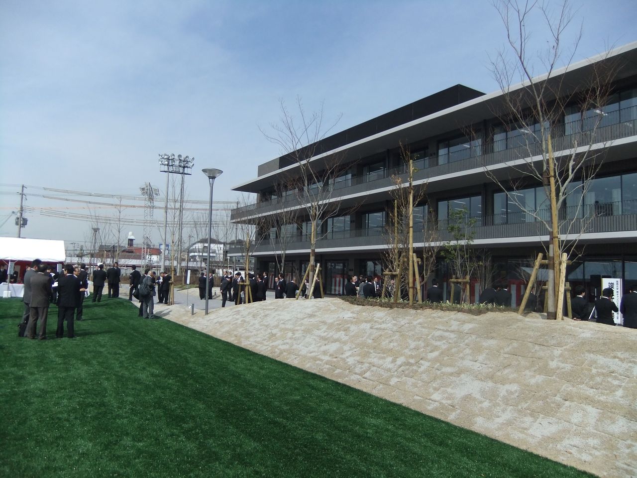 関西大学堺キャンパスで建設中だったB棟が完成し、14日に竣工式とグランドオープン記念式典が行われた。東日本大震災の被害状況を考慮して、予定されていた祝賀会は中止に。記念式典の前に、200人の出席者全員で1分間の黙祷を行った。【写真=新しく完成した堺キャンパスのB棟】