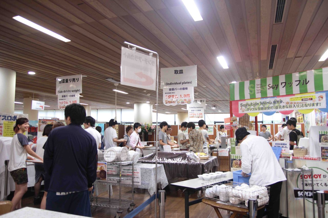 関西大学生協が14日からの5日間限定で実施した100円朝食に、関大生のべ754人が利用したことが18日、分かった。予定していた1000食には届かなかったが、同生協飲食事業部の尾形恒さん(50)は「まあまあの数字。見る限りではいい感じでした」と、レギュラー化へ手応えを見せた。100円朝食は同生協が関大生のニーズを探るため、午前8時30分からの1時間、試験的に実施。1日おきにごはん中心の和食と、パン中心の洋食が出された。初日こそ92人と出足が鈍かったが、最終日の18日は倍以上の190人がテーブルを埋めた。【写真・100円朝食に並ぶ関大生=7月14日】