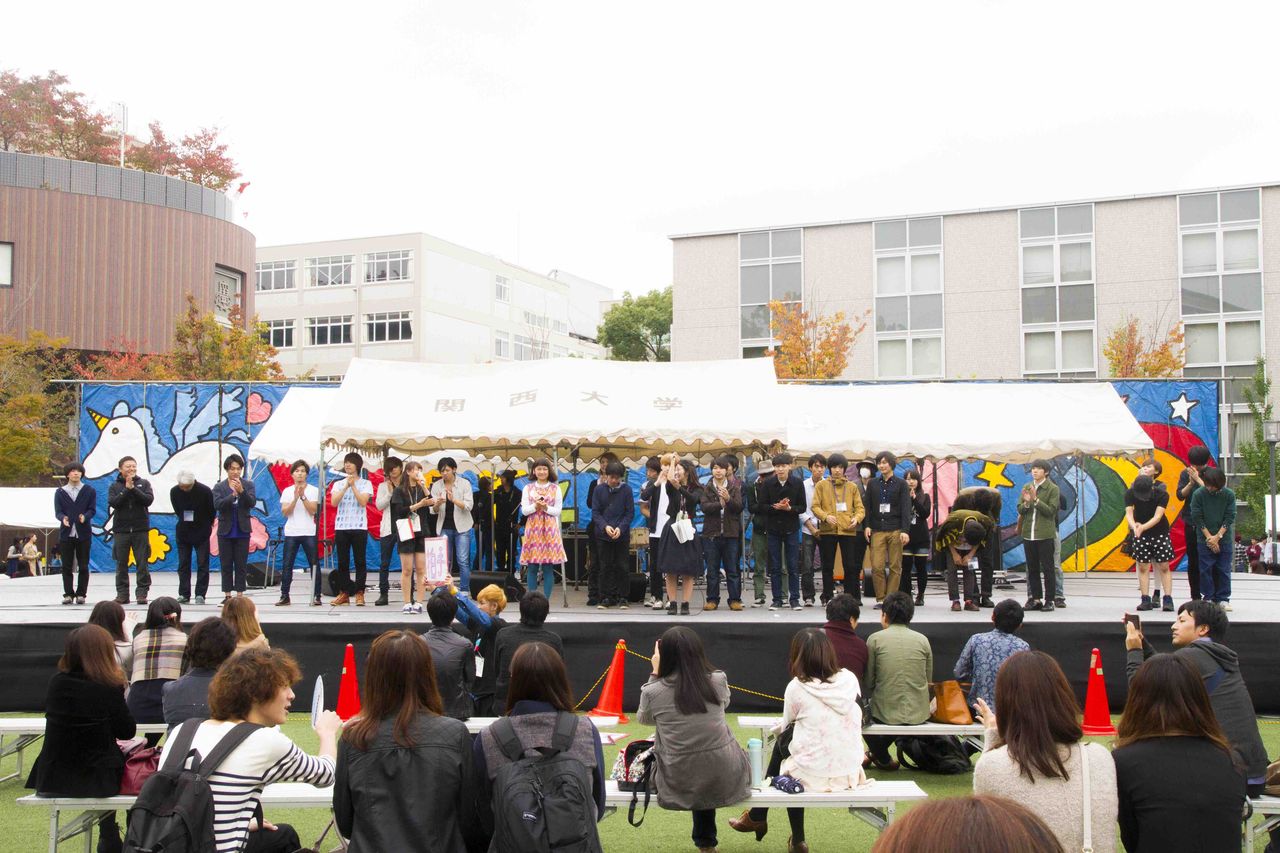 関西大学統一学園祭初日の11月1日に行われた関大ナンバーワン音楽決定戦「K.U.ROCK FEVER 12th」が、世界150カ国でテレビ放送された。May J.さん(26)が司会を務めるNHK海外向け放送・NHKワールドTVの音楽情報番組「J-MELO」が、12月8日(日本時間)放送分でKUロックフィーバーを紹介。優勝した林青空さん(20=政策創造2)やshanariの演奏シーンが流れたほか、統一学園祭の風景が映された。【写真上・世界150カ国で放送されたKUロックフィーバー 写真下・優勝した林青空さん=11月1日・中央ステージ】関大生レポーターが模擬店をまわる場面もあり、知らず知らずのうちに“世界デビュー”を果たしたサークルも。日本国内向けには、14日午前2時40分からNHKBSプレミアム(BS3チャンネル)で放送される。